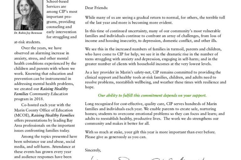 2019 Raising Healthy Families Topics Announced This coming spring, CIP and the Marin Office of Education will co-host our second Raising Healthy Families community education program. Presentations by noted Bay…
