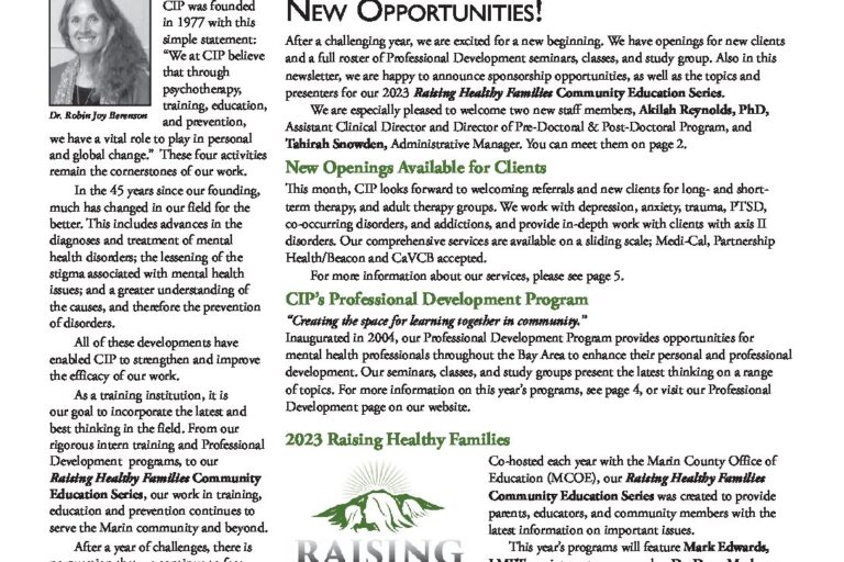 CIP’s Professional Development program, which aims to enhance professional development and create a vibrant and supportive network of professionals, is beginning its second year. Bay Area mental health professionals, registered…